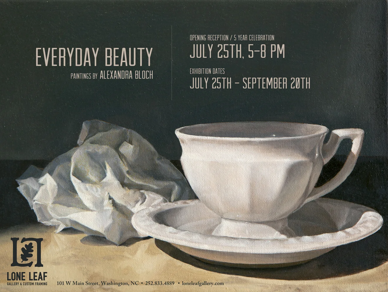 Alexandra Bloch is a representational artist who grew up in New York and discovered her talent and passion for painting, drawing, and design while still a child. After a liberal arts education that included art, art history, and foreign travel, she refined her studio techniques and learned from established artists at a variety of places including the Art Students League of New York, the School of Visual Arts, and Wesleyan University. She currently resides in Raleigh, NC.