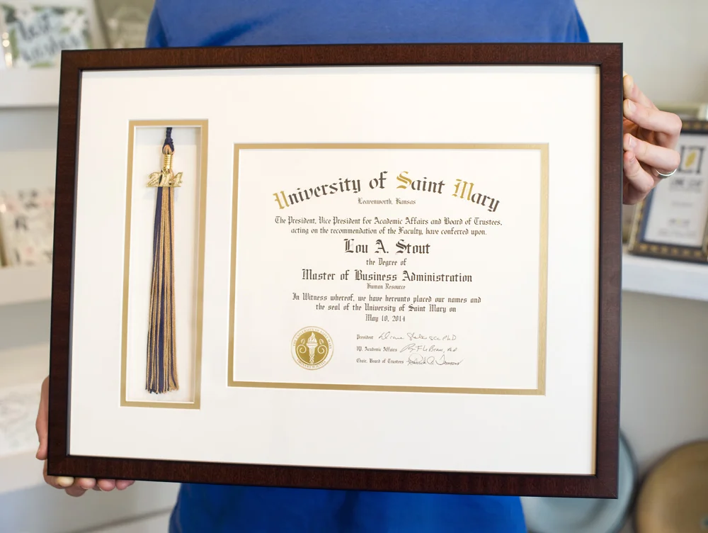 Look What We Framed... August 20, 2014 Neil Loughlin View fullsize Including a tassel alongside your diploma creates a unique way to preserve your academic accomplishments.