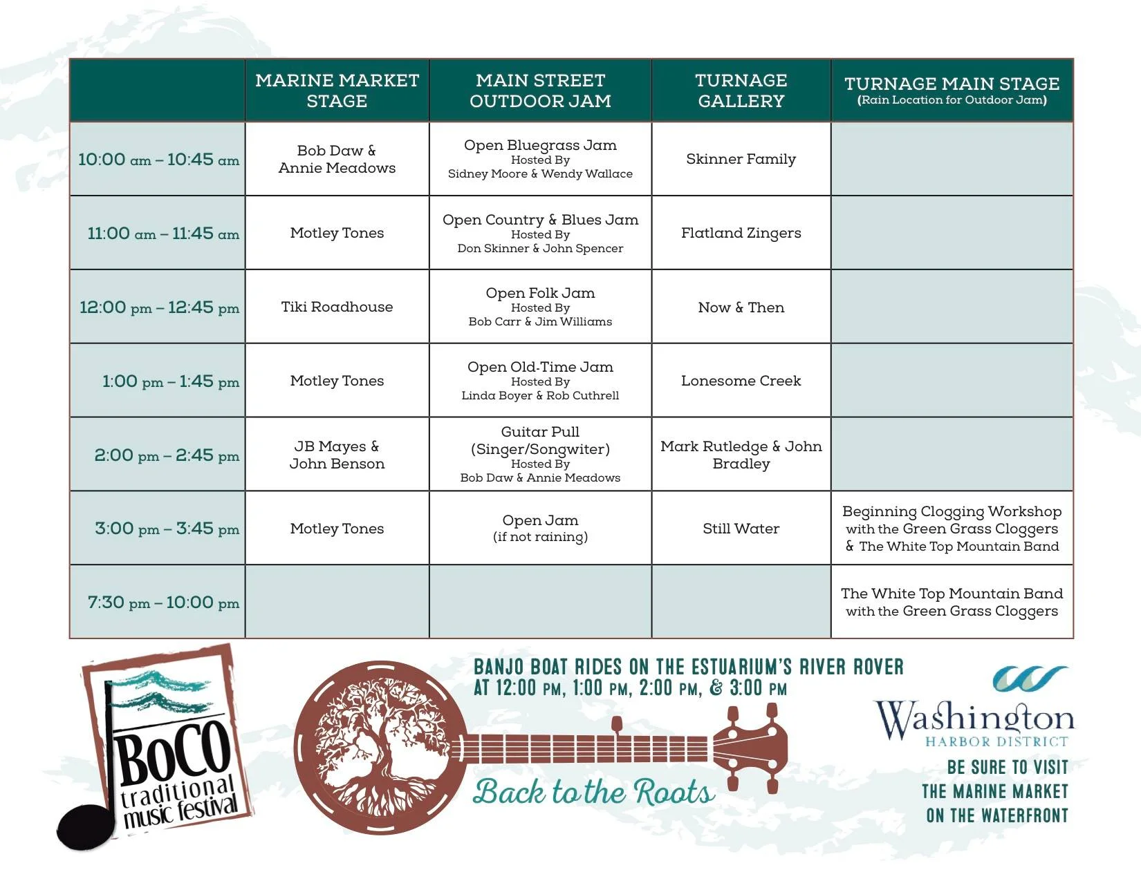 The BoCO Traditional Music Festival takes place in Downtown Washington on Saturday April 25th. There will be live music all day and it's FREE! Check out the schedule, visit the Marine Market (taking place along the waterfront), and bring along your family and friends!