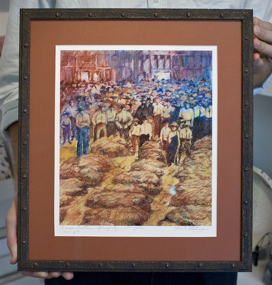 Such an awesome frame for such an awesome print - 'Tobacco Auction' (no. 1 of only 2) by local artist, Alice Stallings (of River Walk Gallery)